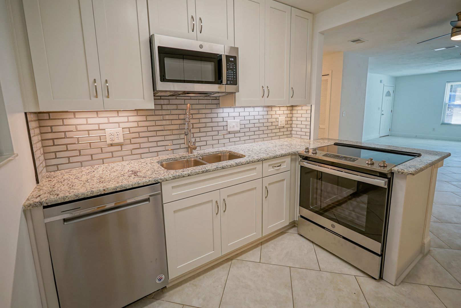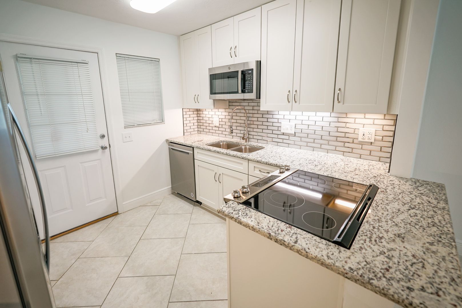 Close to I-10 and the center of town! Luxury Vinyl Plank in bedrooms, ceramic tile everywhere else! Updated kitchen cabinets with under cabinet lighting, sink and granite counter tops. Vanity and updates in bathroom. Luxury Walk in Shower! All new Stainless steel appliances including range, refrigerator, dishwasher and microwave. Very open and light!! Washer/ Dryer Hook-ups. Storage Shed on back patio. Lawn Care included. No pets.